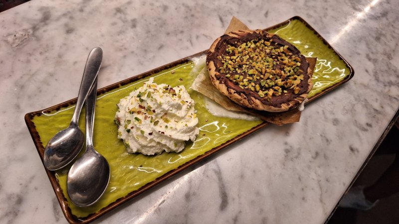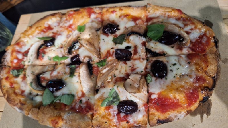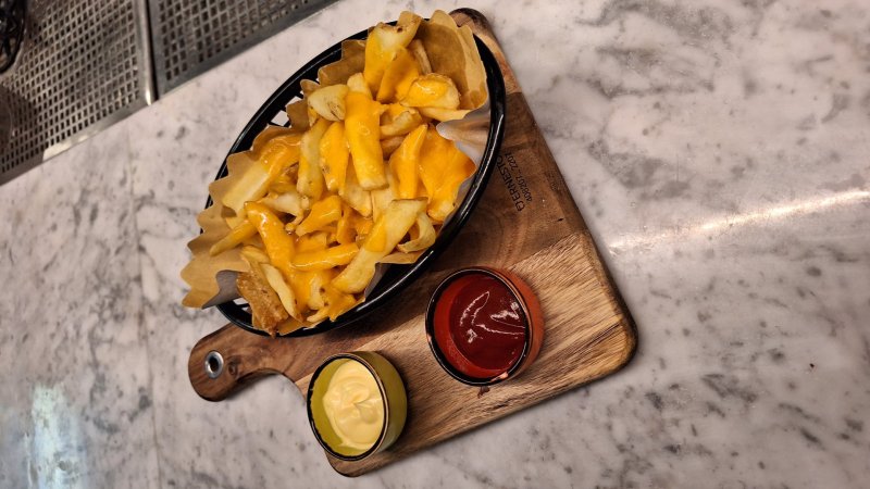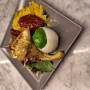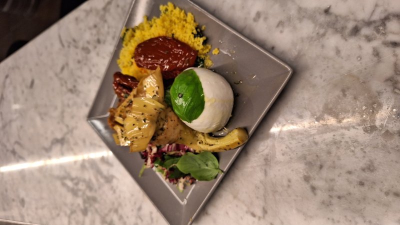 Formaggio, patate con pomodoro, cipolla, olive, evo