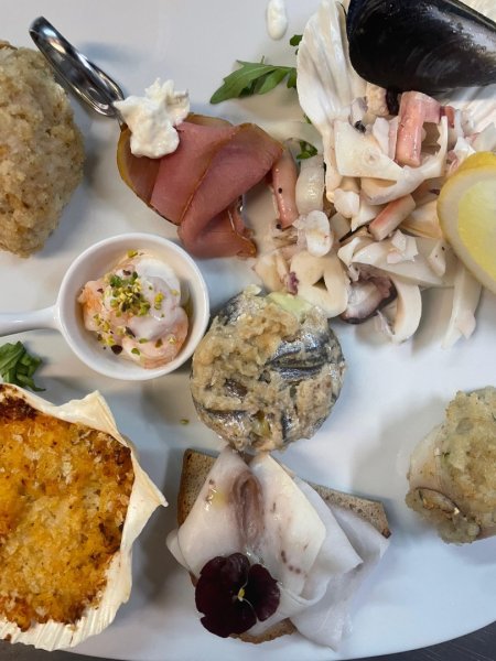 Fior di Latte, cooked in slices and potato croquettes.