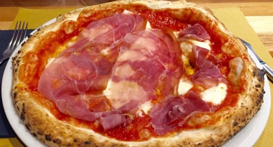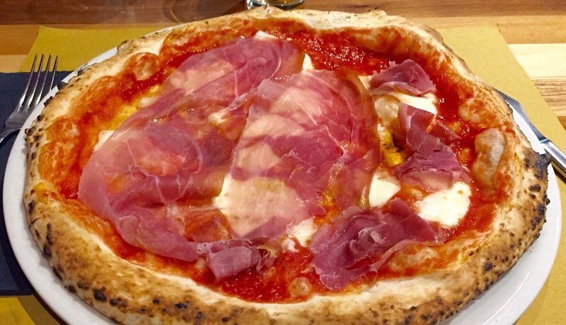 (focaccia con pachino, mozzarella di bufala dop, petali di parmigiano, prosciutto crudo di parma, rucola)
