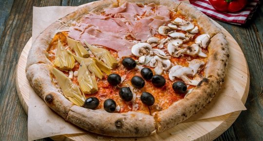 (4 fette di pizza diverse: salsiccia e friarielli / cotto e funghi/ provola di agerola e speck / salame napoli e peperoni)