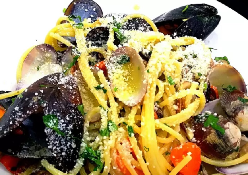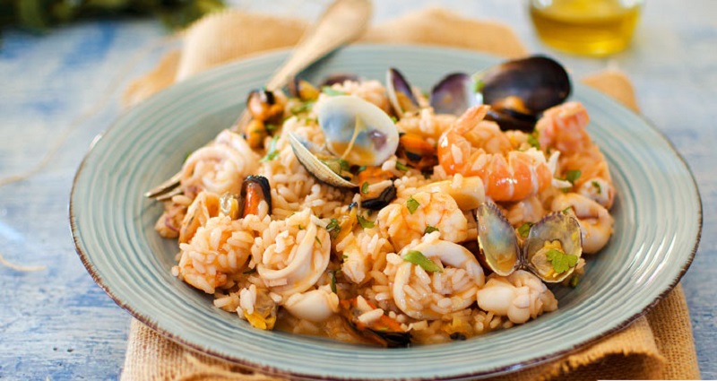 Insalata, Gamberi (Crostacei), Mazzancolle (Crostacei), Seppiette (Molluschi), Aglio, Prezzemolo, Calamari (Molluschi), Cozze (Molluschi), Vongole (Molluschi)