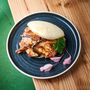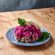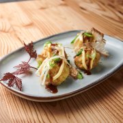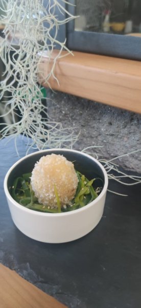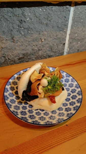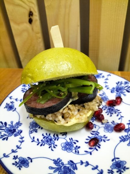 Panino morbido verde al vapore, ripieno con cotechino avvolto nell'alga nori, mayo allo yuzu ... non ci sto più a scrivere guarda INFO sotto.