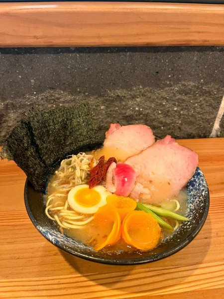 Ramen speciale con brodo torbido di pollo, manzo e maiale. Delicato, oppure leggermente piccante. A completare l'ovetto marinato. Come il tokyo ma più intenso.