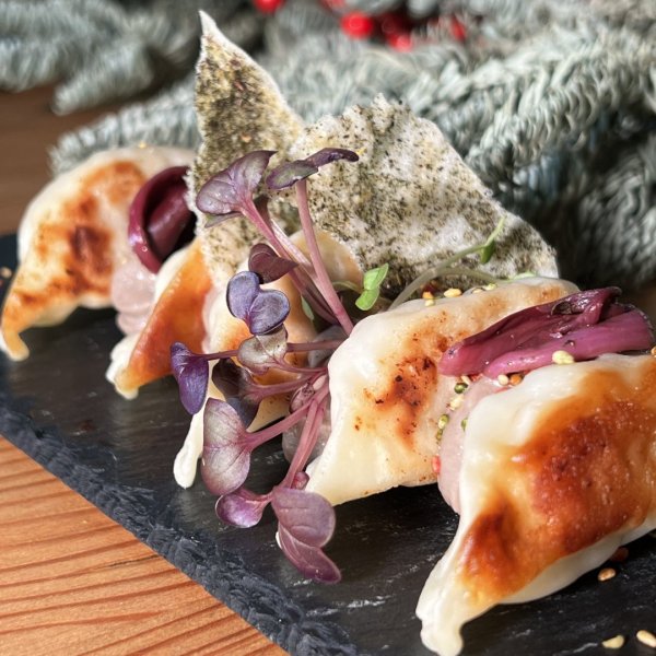 I nostri Takoyaki, come da tradizione, vengono serviti con purea di topinambur, gustosissime salsine agrodolci e katsuobushi.
