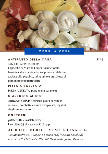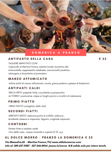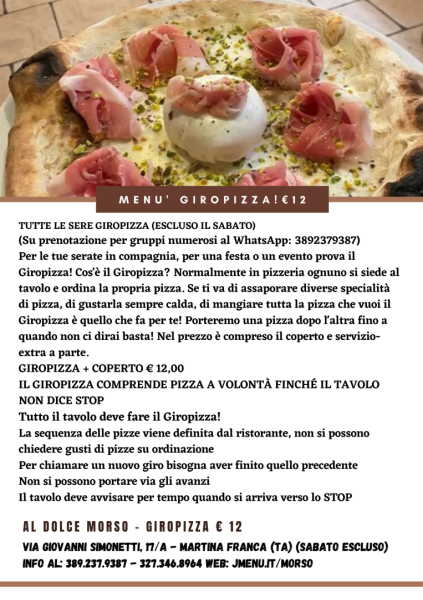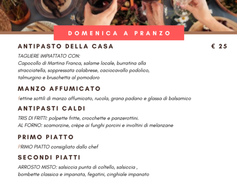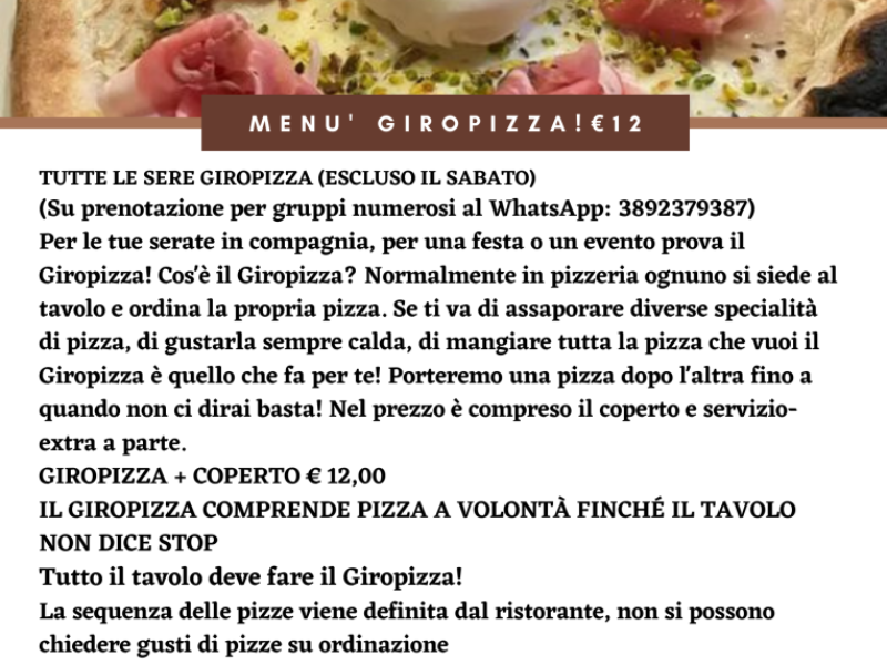 All you can eat all'italiana mangi quanto vuoi ad un prezzo fisso. Costa € 22.90 a persona per un numero di portate illimitate e non comprende bevande e dolci . La formula “All You Can Eat”