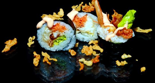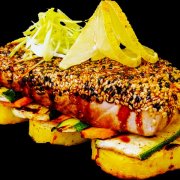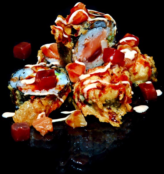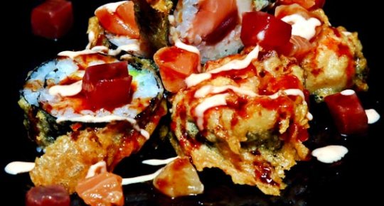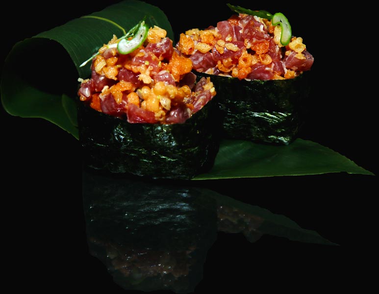 Tonno, erba cipollina, tempura croccante e salsa yozu