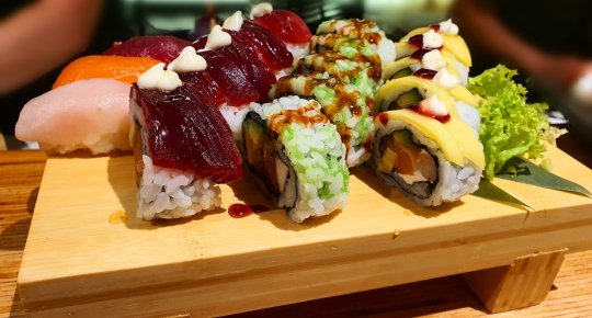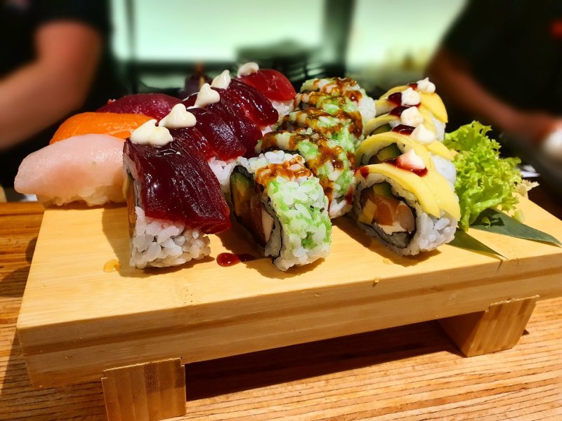 A scelta tra tonno, pesce spada, salmone, capesante, polpo, gambero, anguilla, calamaro