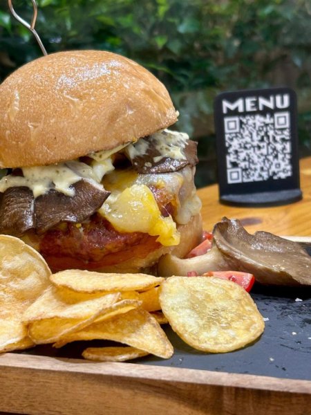 Accompagnato da chips di patate e insalatina