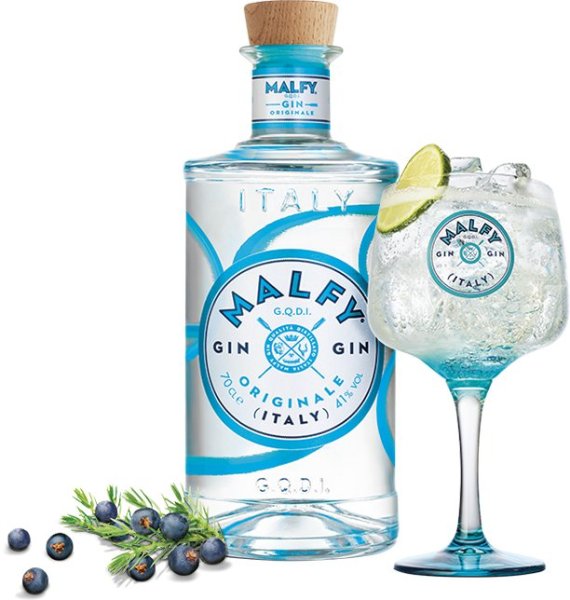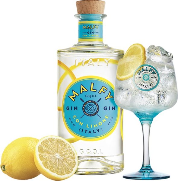 Gin Malfy è un gin 100% italiano, che racchiude in se l'eccellenza della sua materia prima, una pregiata selezione di limoni provenienti alcuni da Amalfi, altri dalla Sicilia, conferendo al distillato un aroma fresco e piccante. Prodotto ad opera della famiglia Vergnano, tutte le fasi della distillazione sono seguite con estrema cura ed attenzione, fino ad arrivare ad un packaging estremamente accurato, che si fa notare subito per il suo colore brillante, il marchio GQDI (Gin di Qualità Distillato in Italia) e lo stemma, che ricorda le competizioni di canottaggio che avvenivano tra gli antichi regni d'Italia. Un gin tradizionale con quel tocco di innovazione che lo rendono perfetto da bere liscio, ma anche in accompagnamento alle migliori acque toniche.