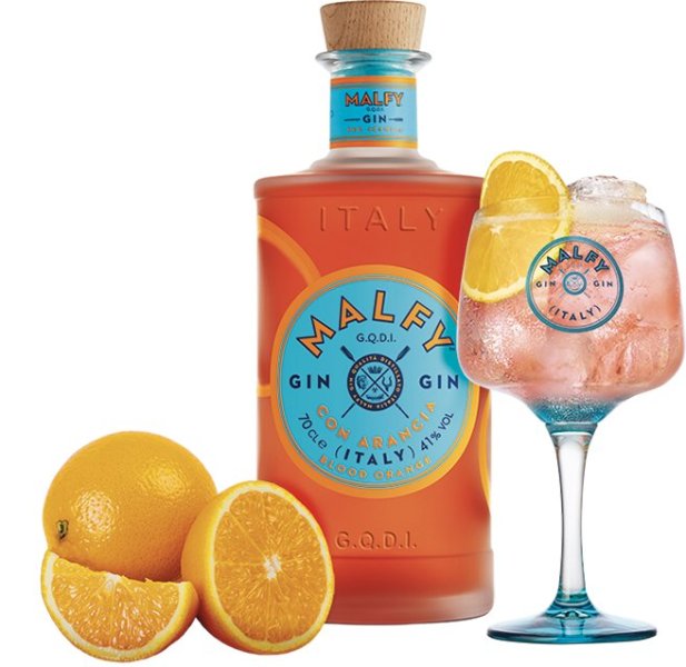 Gin Malfy nasce con l'intento della famiglia Vergnano di creare un prodotto che si differenziasse dagli altri, fuori schema, che si facesse notare a prima vista per il suo colore brillante e bottiglie dal particolare design chiuse da un tappo di quercia. Ma è la lavorazione della materia prima che fa la differenza, in grado di unire qualità, tradizione ed innovazione in un unico prodotto che racconta il meglio del bere made in Italy. In questo Gin le scorze delle migliori arance rosse di Sicilia, dopo la raccolta, vengono immerse nell'alcol, pressate e poi messe a macerare insieme alle bacche di ginepro per circa 6 ore. La distillazione a bassa temperatura, poi, riesce ad estrarre tutte le proprietà dell'arancia, per rendere perfetto sia il profumo che il suo sapore. È un Gin che offre una degustazione assai piacevole, non solo in miscelazione, ma anche liscio.