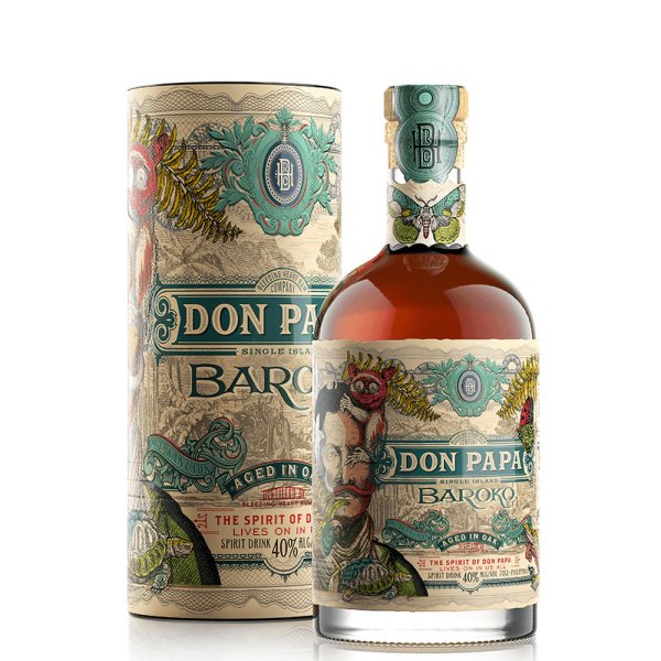 Originale Don Papa ma in una nuova veste, il Baroko mette in mostra tutta la sua personalità e il suo carattere distintivo grazie ad un gusto pieno ed esuberante, proprio come la figura di Papa Isio, eroe rivoluzionario e sciamano dell’isola di Nigros, nelle Filippine, ricordato per le sue guerre alla conquista dell’indipendenza dell’isola. Più dolce e meno secco del Rum Don Papa 7 Anni, il Baroko è realizzato a partire da melassa ‘black gold’ ed è invecchiato, per anni, in botti ex-Bourbon, alle pendici del Monte Kanlaon, per ottenere un gusto rotondo e ricco, dalla grande verve!