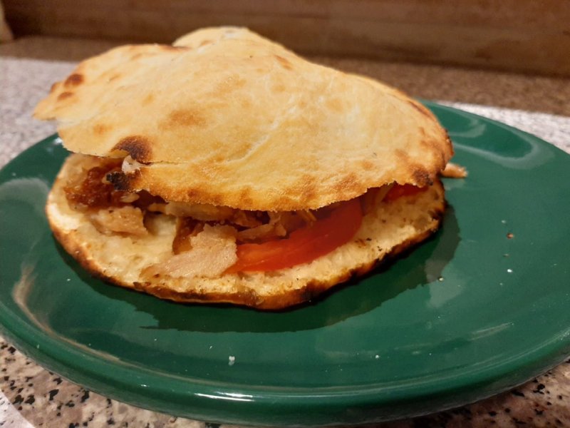 Focaccella calda, carne di pollo e tacchino, salse, tre ingredienti a scelta da segnalare nelle note sotto il menù variazioni (vedi info)