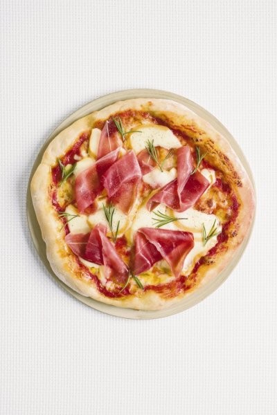 Olio evo, prosciutto crudo, mozzarella, sale