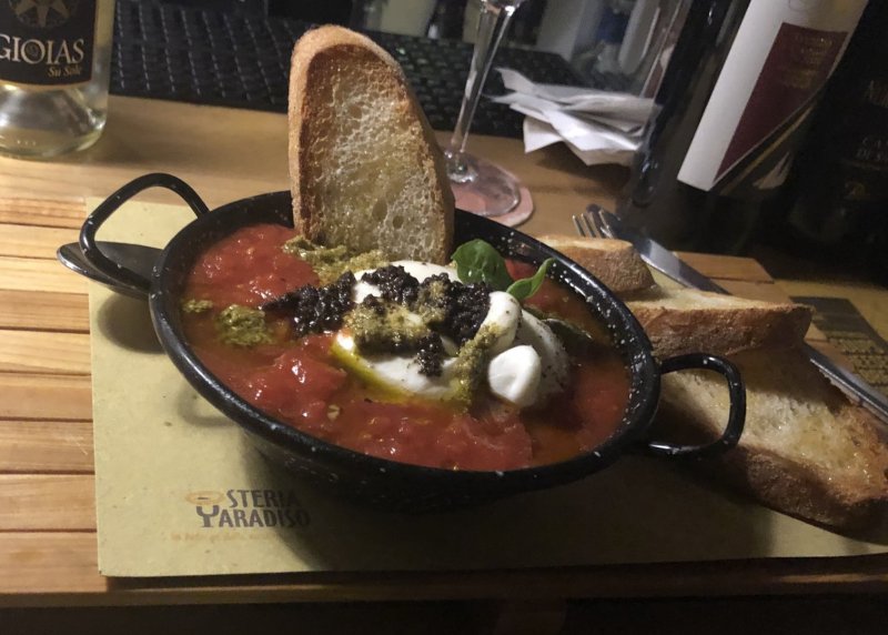 Varcata la sua soglia sarete catturati dall'originale e accogliente ambiente, dove sarà naturale ritagliare attimi di relax per coccolarsi. Da soli o in compagnia, sarete avvolti dagli invitanti profumi e potrete scoprire nuovi gusti o scavare nella memoria e ritrovare il gusto dei cibi e del buon bere di una volta. Pane caldo, buon vino al bicchiere, formaggi, salumi e prodotti sott'olio sono la prima essenza di Osteria Paradiso. Una accurata selezione di vini, olii, confetture, birre artigianali e tanti altri prodotti del piccolo e sapiente artigianato alimentare nazionale , miracolosamente sopravvissuti alle nuove logiche commerciali della piatta globalizzazione.