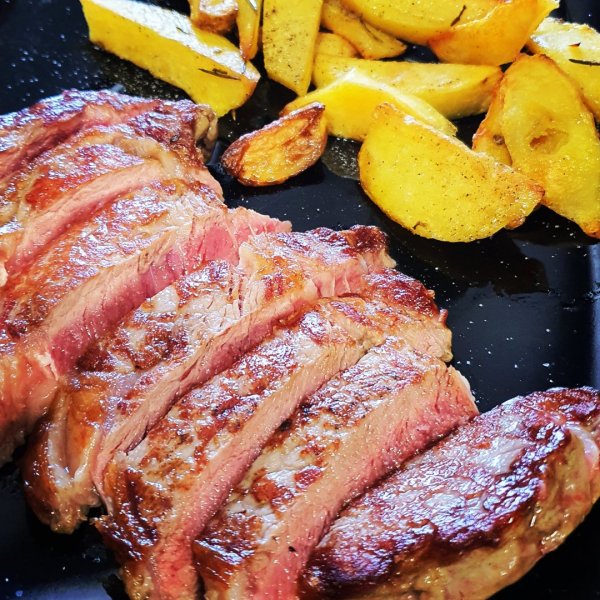 Servito con PATATINE FRITTE {140 gr di Carne di Manzo con insalata pomodoro e Mayonese}