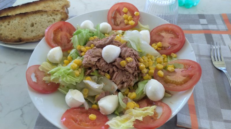 Misto di verdure cotte alla piastra, più Mozzarella fresca e Bruschettine condite con olio e sale