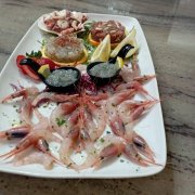 Gamberi, calamari, occhialoni, triglie, surici, pèttini, trigliozzo. Secondo la disponibilità del giorno