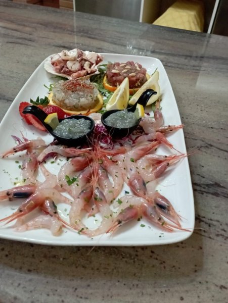 Gamberone, pesce spada, scampo, calamaro, spatola. Secondo la disponibilità del giorno
