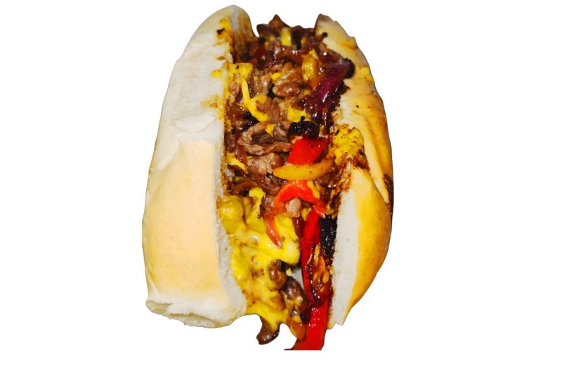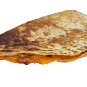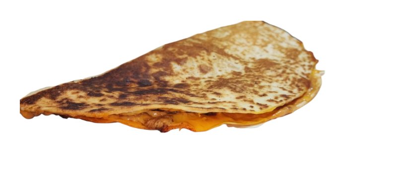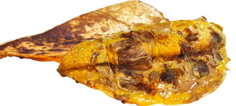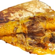 Tortilla di grano, cheddar, bistecca di manzo sfilacciato, peperoni, cipolla, salsa worcestershire