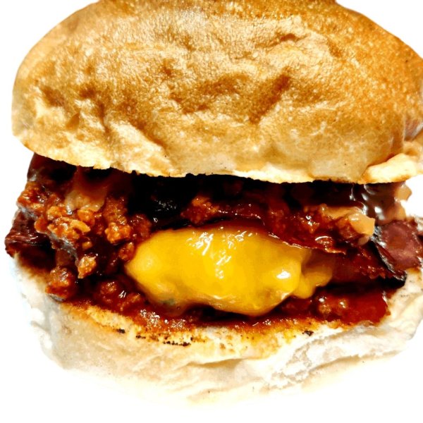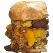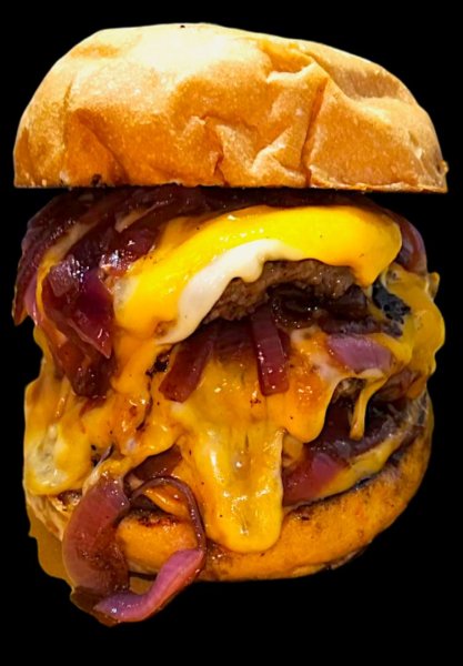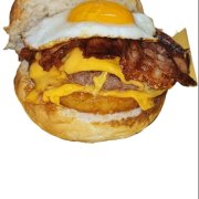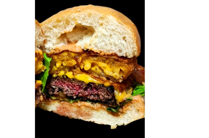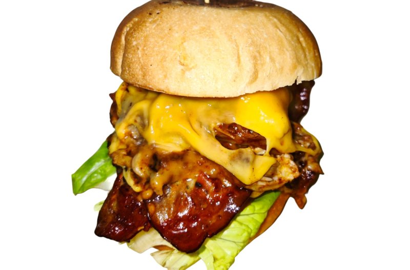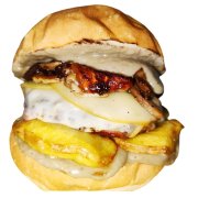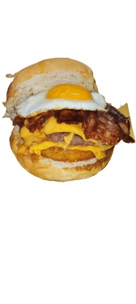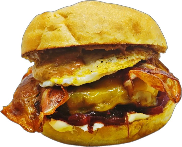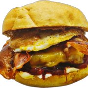 pane, bacon, cheddar, uovo, burro d'arachidi, cipolla caramellata, maionese.