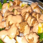 3 bocconcini salmone, 3 chele di granchio, 2 gamberi in panko, 1 filetto di merluzzo d'Alaska da 150 gr. Salsa Remoulade omaggio