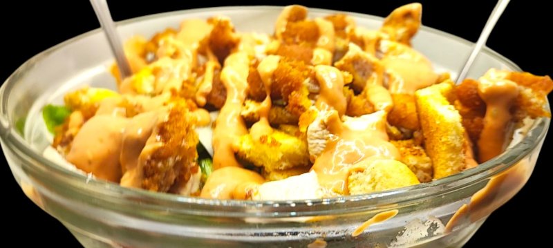 Lattuga Romana,Sovracoscia di pollo alla piastra , parmigiano, crostini di pane, Salsa Norand's
