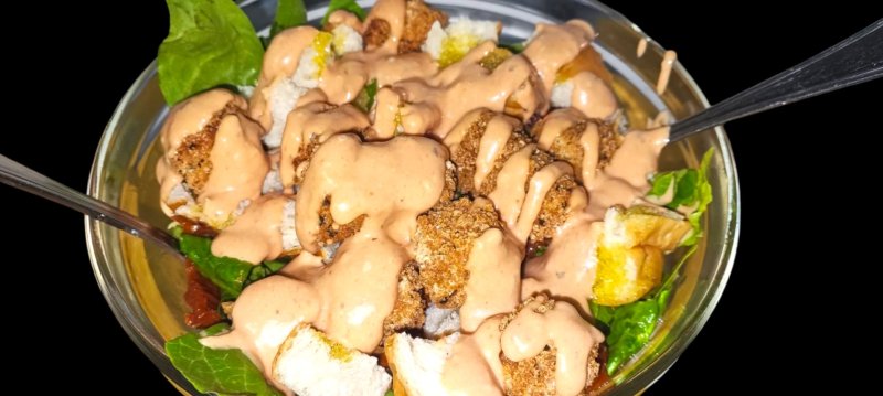 Lattuga Romana, Uova a Frittata, pomodori secchi, crostini di pane, salsa Norand's.