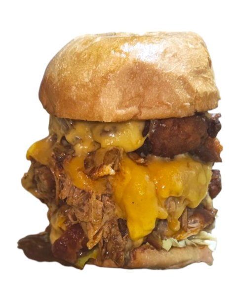 Pane, maiale cotto a bassa temperatura e sfilacciato, cheddar, barbecue, salsa Elly's