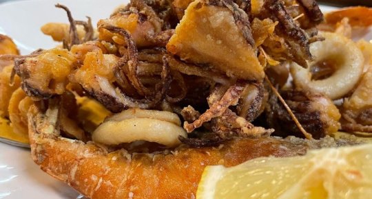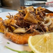 Gamberoni fritti in pasta kataifi con crema di avocado