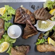 Fior di latte, tonno affumicato , peperone crusco e polvere d’arancia