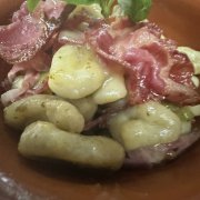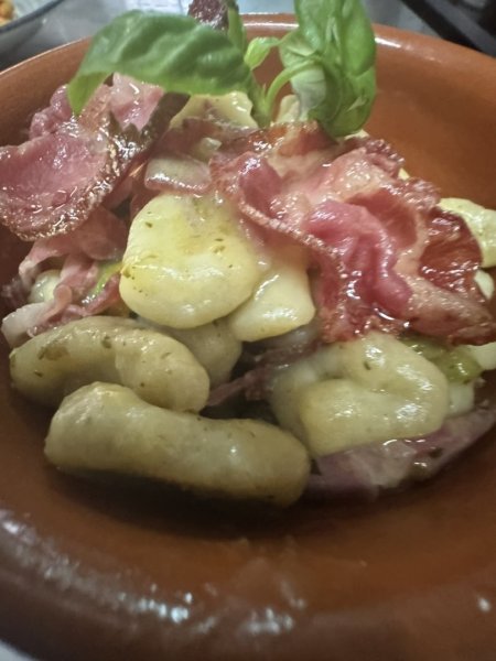 Fior di latte, pancetta croccante, patate buccia e burrata