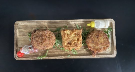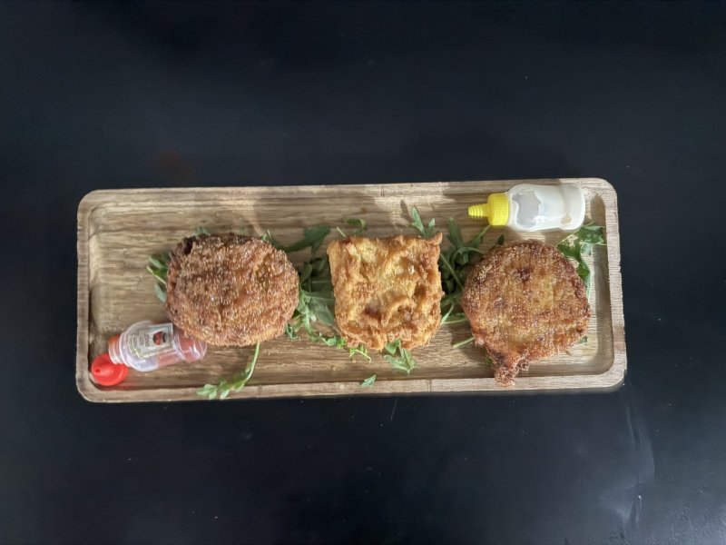 Fior di latte, crocchè di patate, pecorino, insalata, burger.