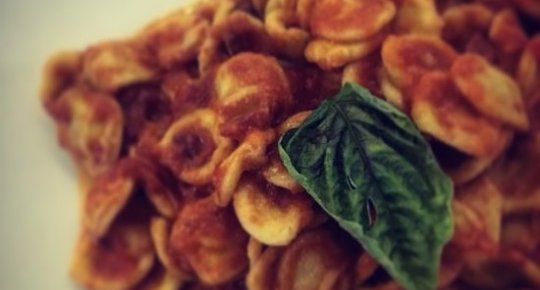 Tonnarello con polpa di branzino, melanzane e olio aromatizzato alla menta