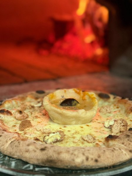 fior di latte, patate lesse, salsiccia fresca, melanzane, provola affumicata e peperone crusco