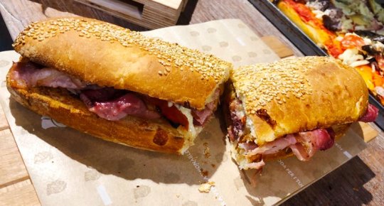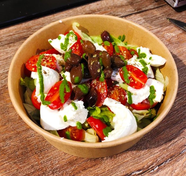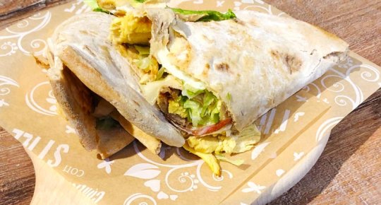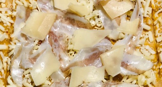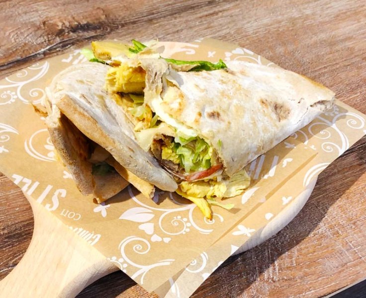 Piada-Pizza arrotolata ripiena di Petto di Pollo cotto a Bassa Temperatura di nostra produzione ripassato in forno e tagliato a fette, Mozzarella, Cheddar, Misticanza, Peperoni, Salsa di Tabasco piccante.