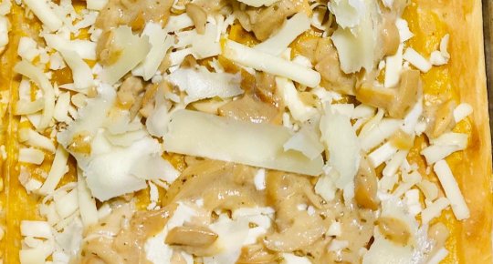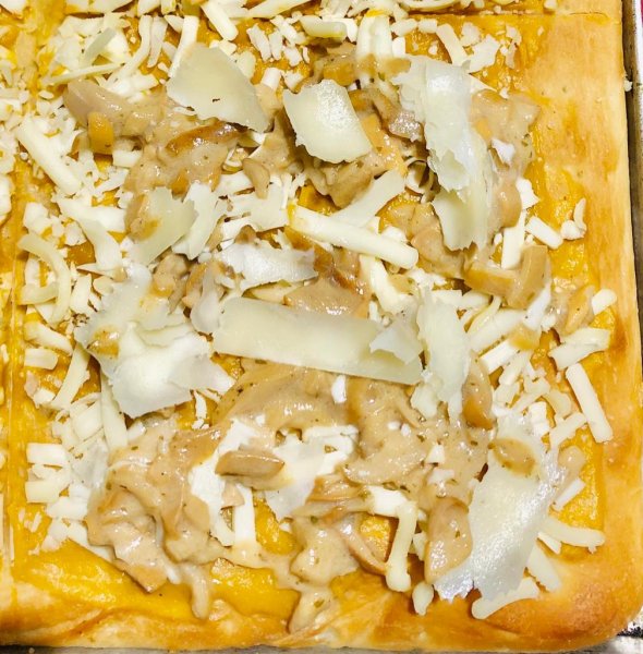 Crema di zucca di nostra produzione, formaggi misti, porcini e scaglie di pecorino