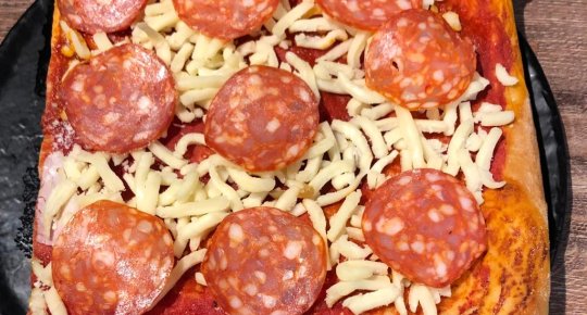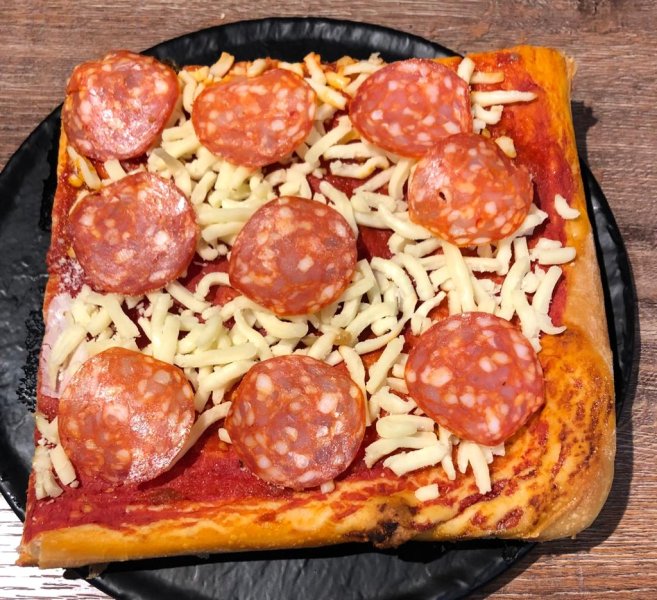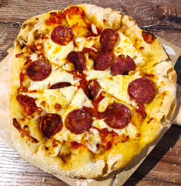Pomodoro, mozzarella, salamino piccante, gorgonzola dolce