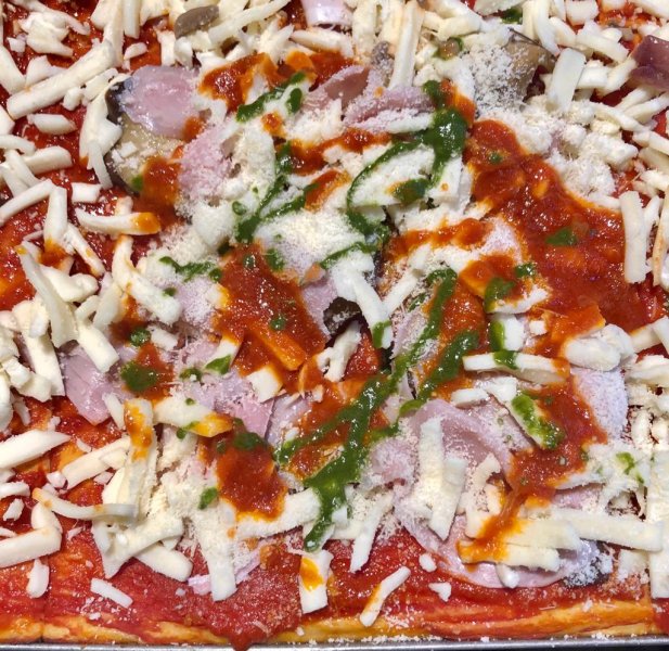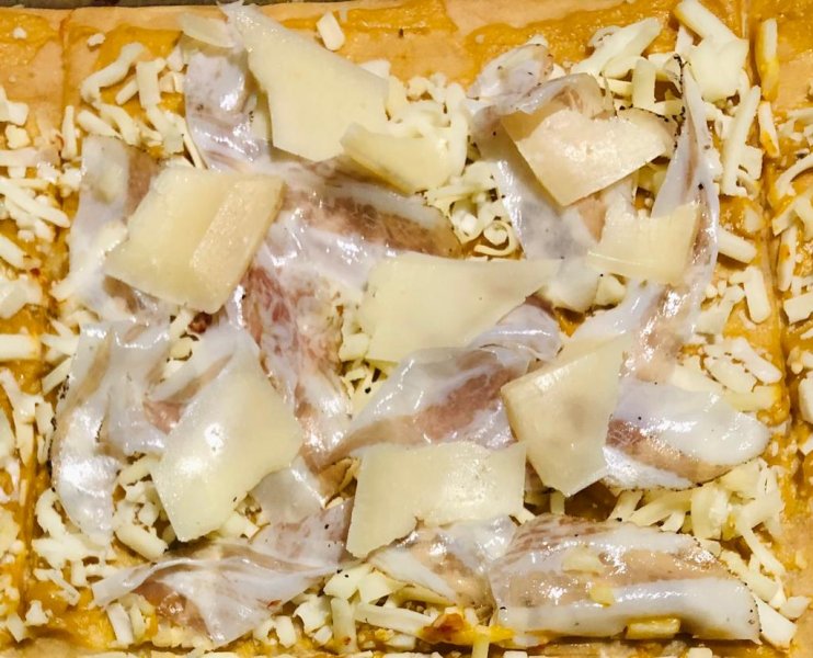 Prosciutto Cotto alla Brace, Crema ai Formaggi, Salamino Piccante e Peperoni cotti al Forno