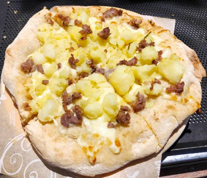 Pomodoro, mozzarella, salsiccia, patate stufate