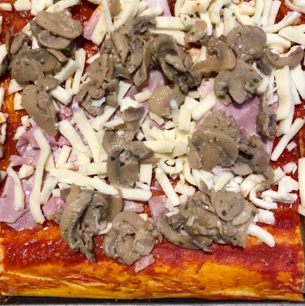 Pomodoro, mozzarella, prosciutto cotto, funghi, carciofi, olive