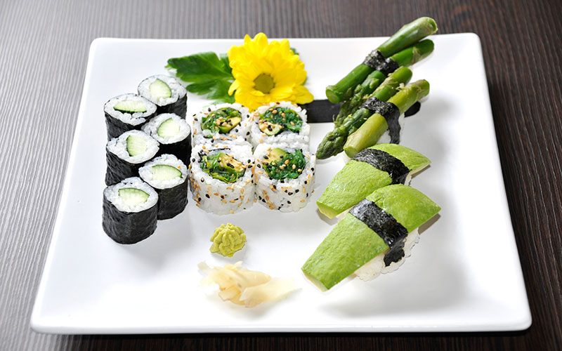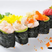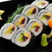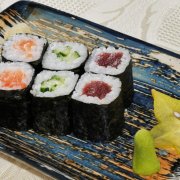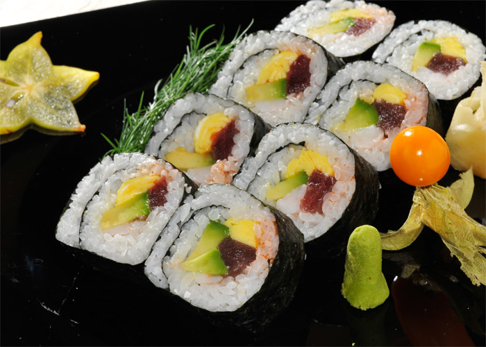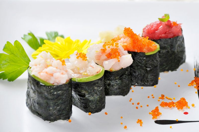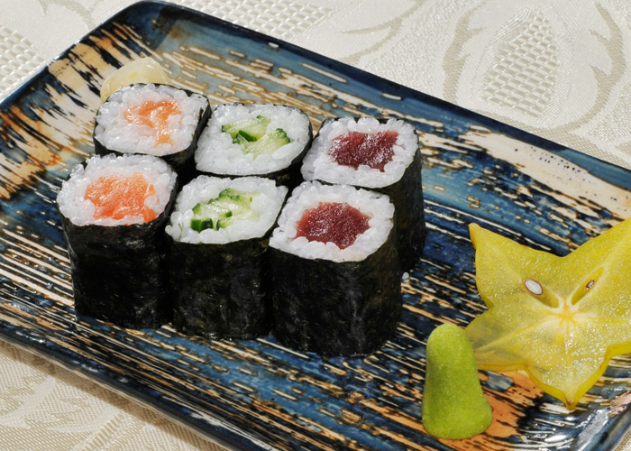 Rotolini di riso avvolti all’esterno con l’alga nori. Sono ripieni di salmone, tonno, anguilla, gamberi o verdure