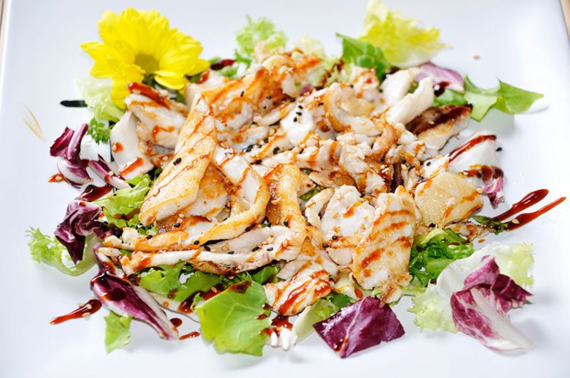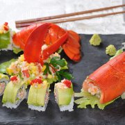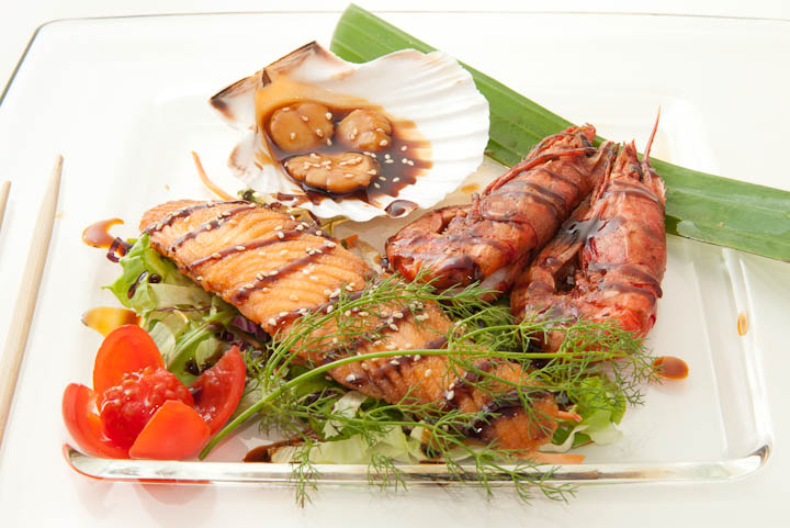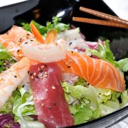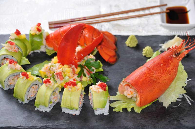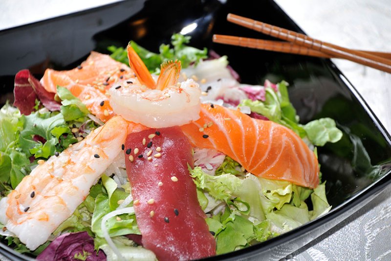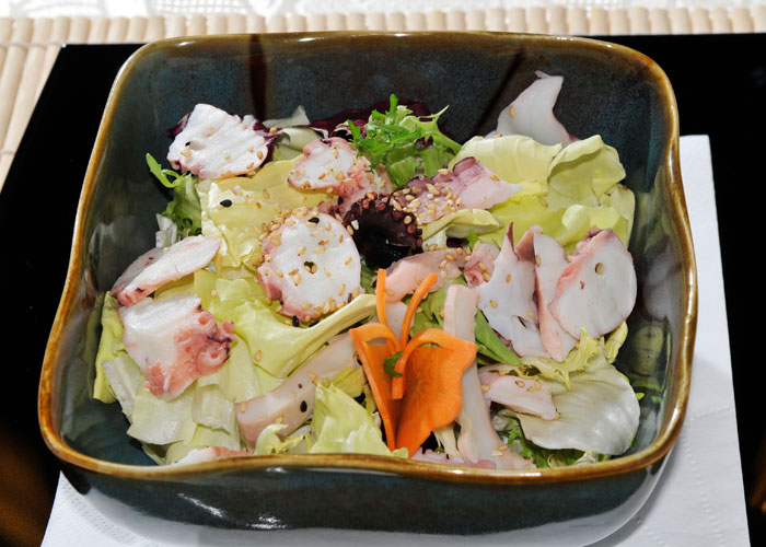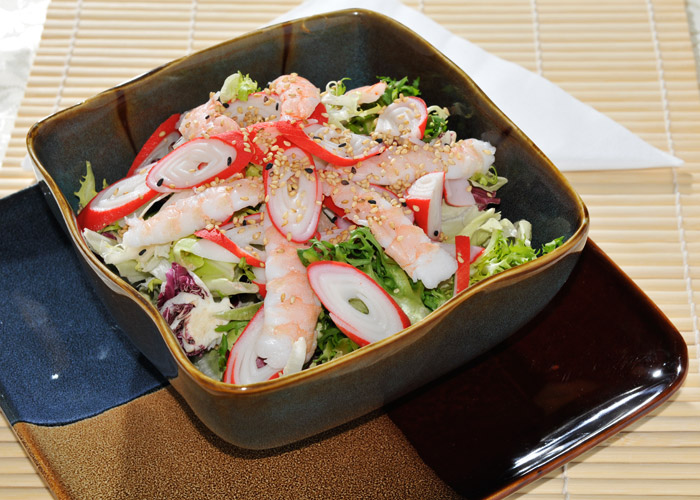 Granchio, code di gambero o polpo su letto di insalata mista per accompagnare i piatti di Sushi con gusto e leggerezza.
