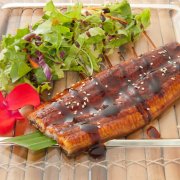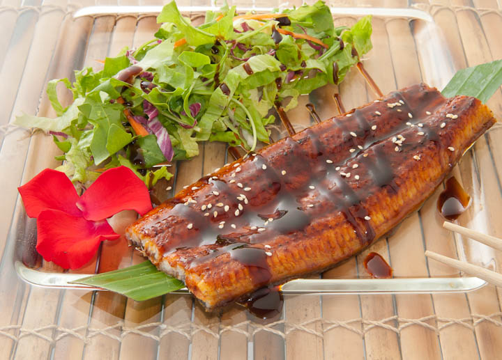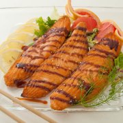 3 spiedini di gamberetti alla piastra con salsa kabayaki