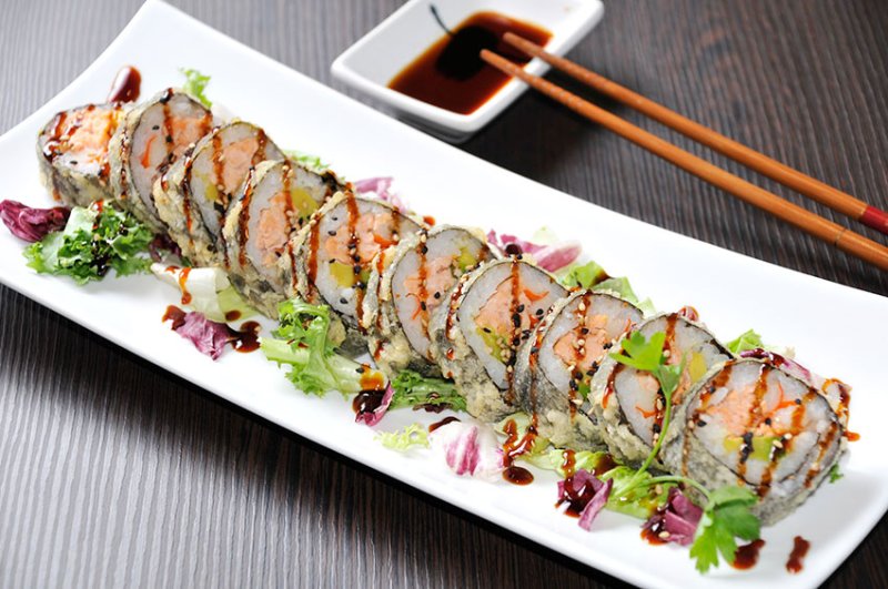Rotolini di riso esterno e con verdure e filetti di pesce crudo o tempura all’interno