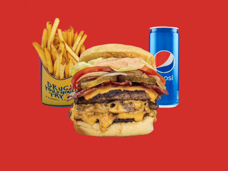 Pasta saltata con verdure, uova, petto di pollo speziato e salsa picante