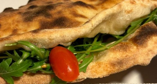 Panino ripieno con prosciutto crudo, rucola e reggiano