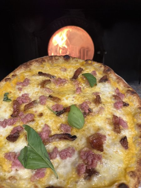 pomodoro, mozzarella fior di latte, nduja calabrese, mascarpone e speck