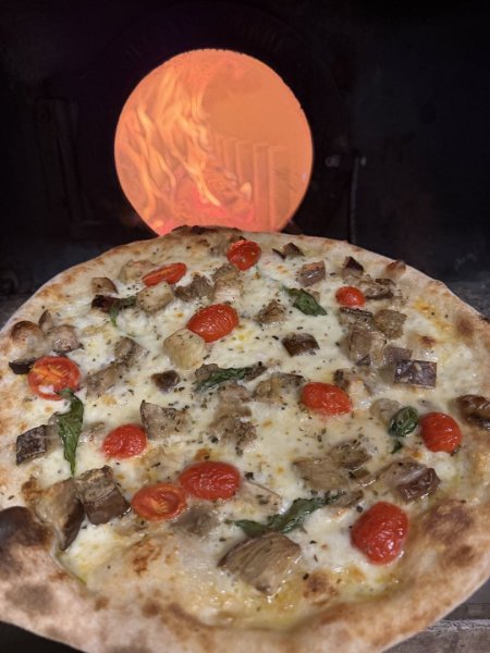 pomodoro, salame piccante calabrese, cipolla rossa, melanzane e nduja