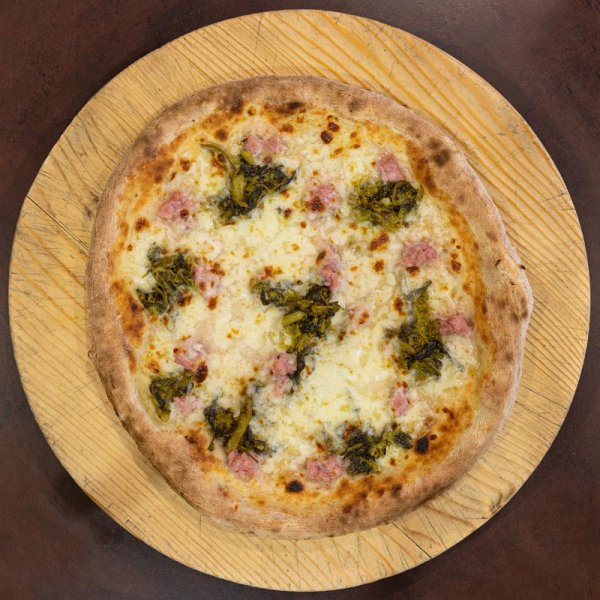 Pomodoro, mozzarella, salamino piccante, salsiccia, funghi chiodini, brie e peperoni