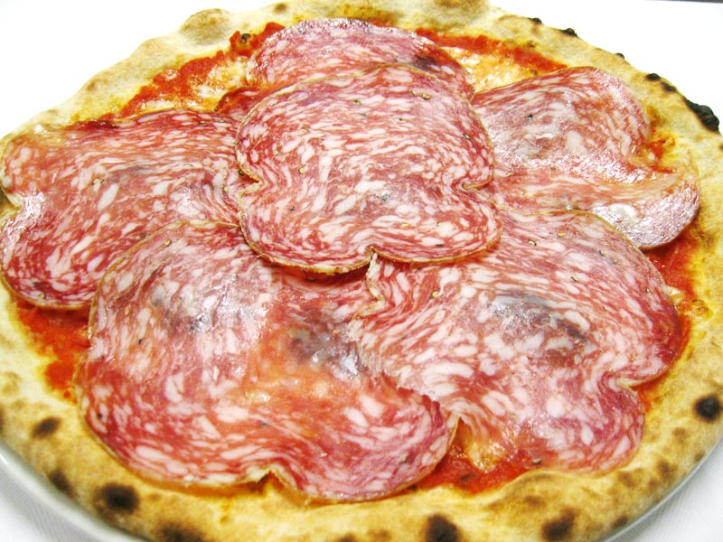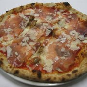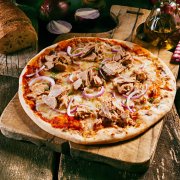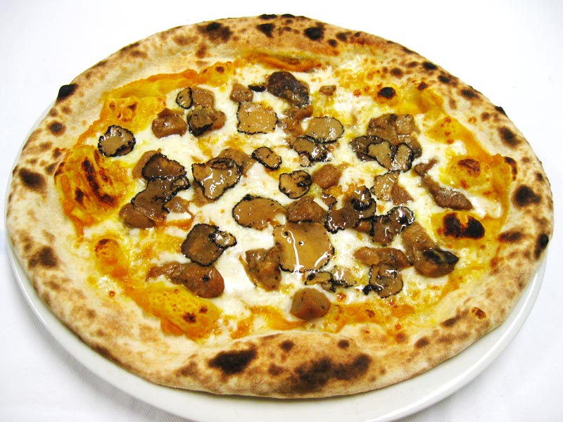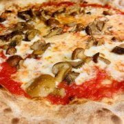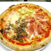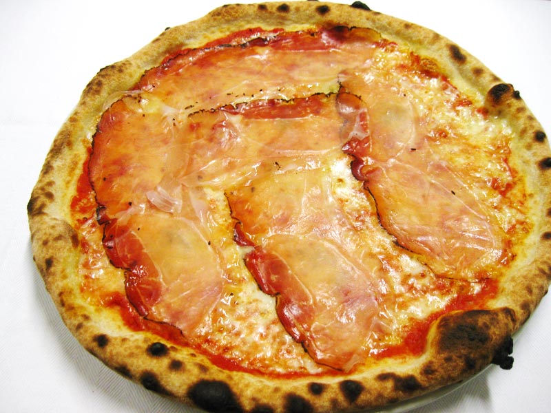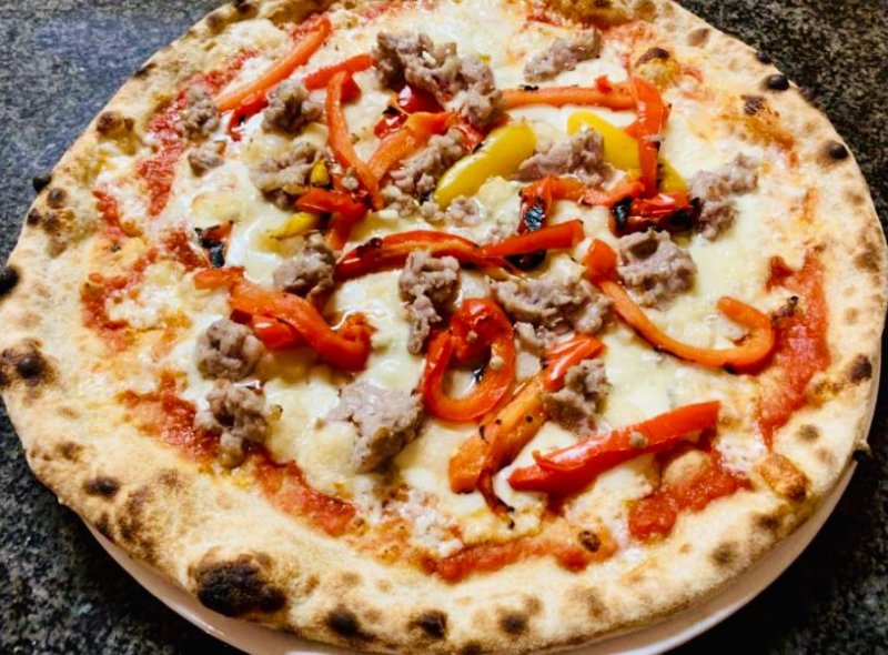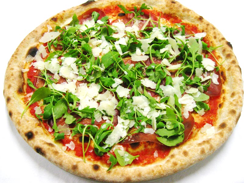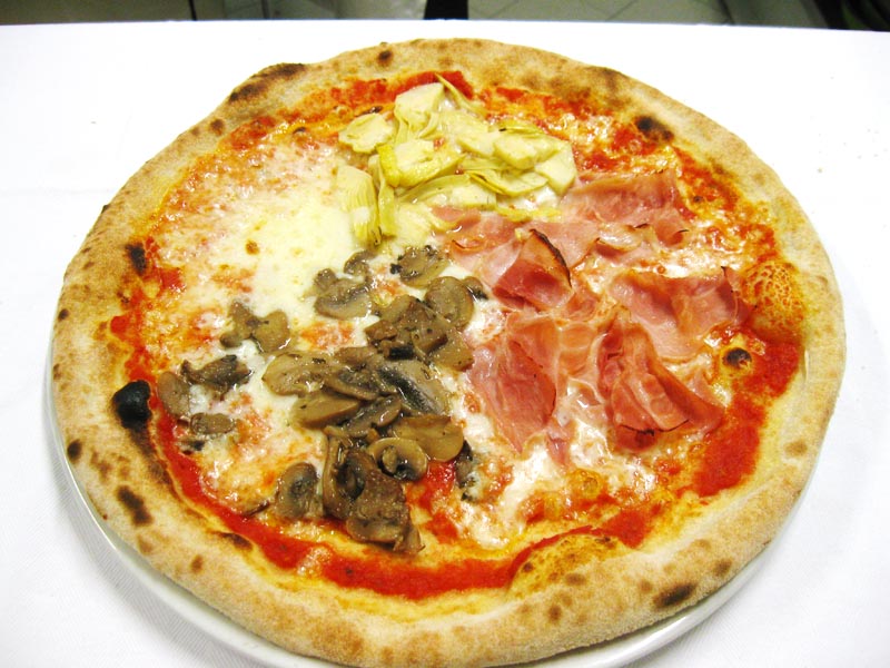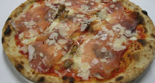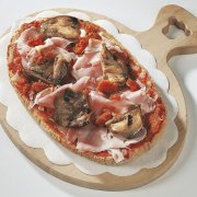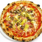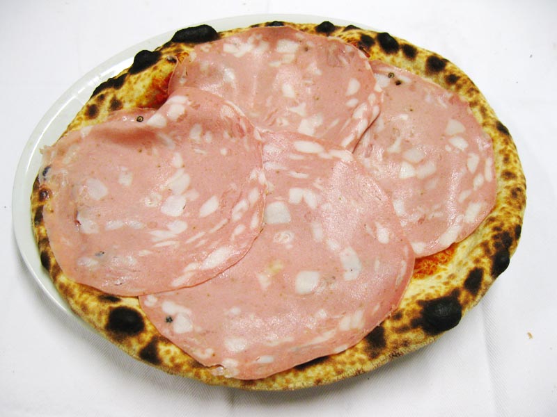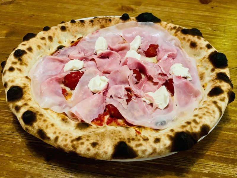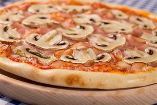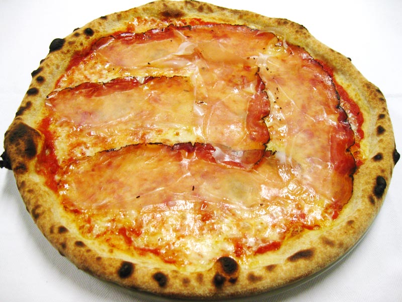 Polpa di pomodoro, formaggio, salsa peperoni e funghi prataioli, pancetta nostrana